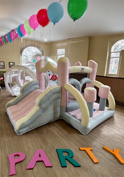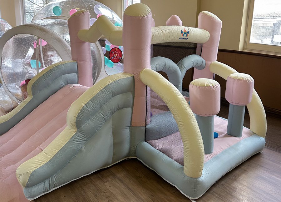 Its modern pastel design blends beautifully with birthday parties, baby showers, daycare events, and family celebrations, making it a favorite for parents who want stylish and safe entertainment.
