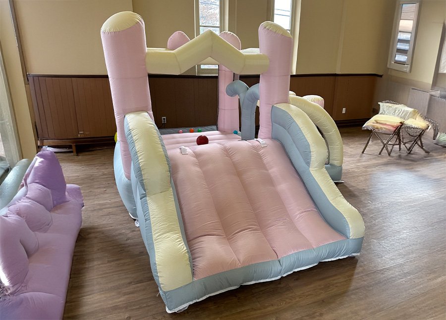 Create a magical and safe play space for your youngest guests with our Pastel Toddler Bounce House with Slide Rental. Designed specifically for toddlers and preschoolers, this soft-colored inflatable features gentle climbing steps, a small slide, wide arches, and an enclosed bouncing area — ideal for early childhood fun.